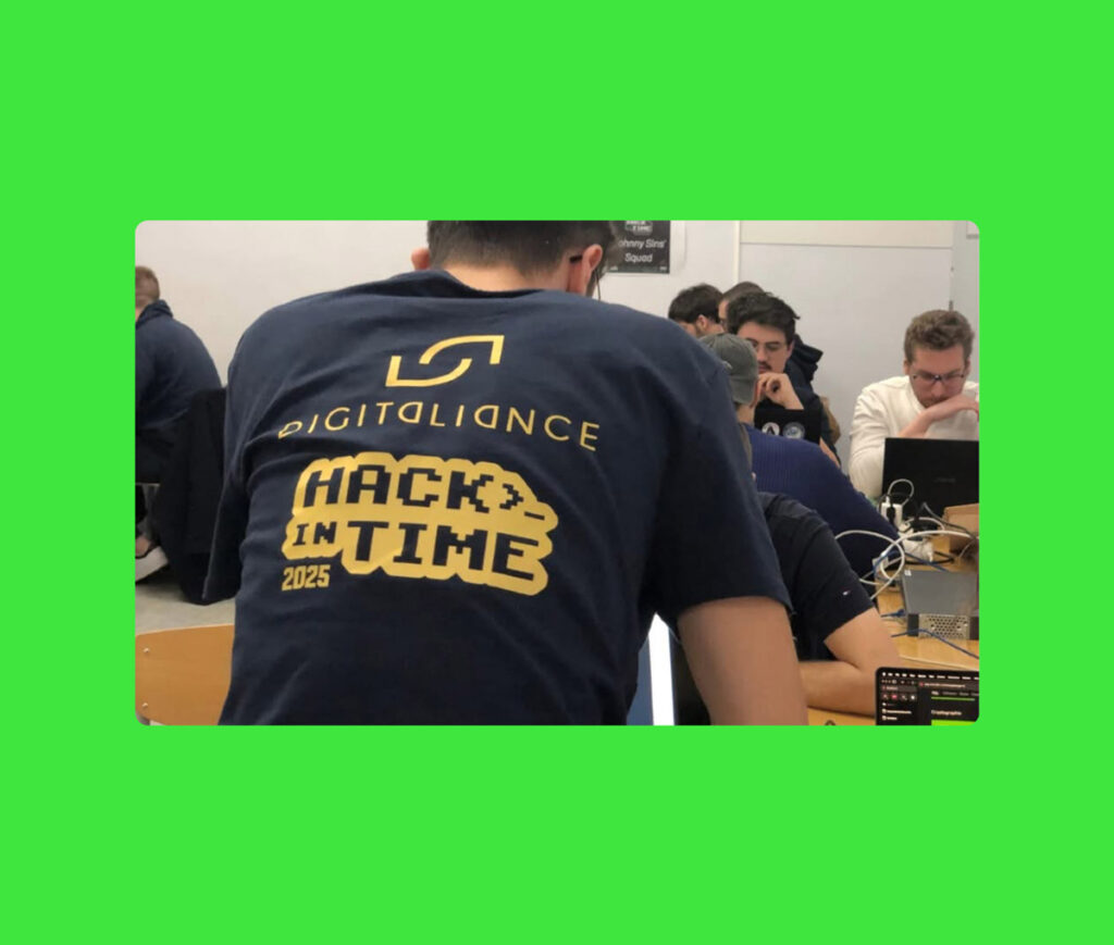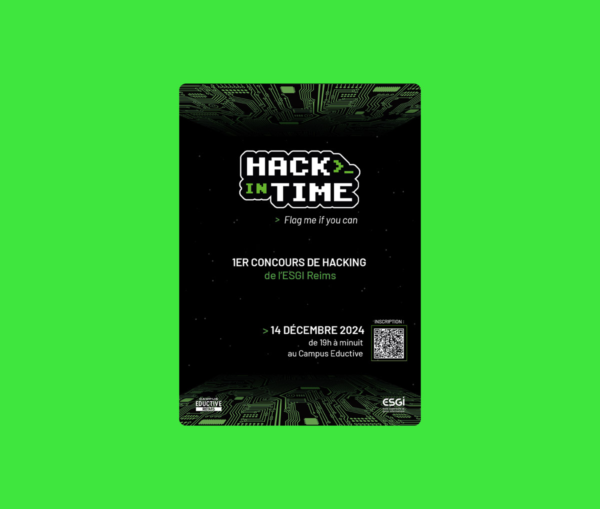 Le brief était de faire un logo sur le thème de Retour vers le futur et les Eighties pour un concours de hacking pour l’ESGI de Reims. La disposition du logo est donc inspirée du logo du film Retour vers le Futur. En effet, le logo du film est composé sur deux lignes, et possède une flèche sur la première ligne à droite.